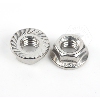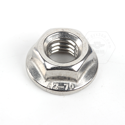 • 產(chǎn)品描述:DIN6923 六角法蘭帶齒螺母,又名六角法蘭面帶齒螺母、六角法蘭帽、六角帶墊帶防滑齒螺帽、法蘭面防松帶齒螺母、花齒法蘭防松螺母。DIN6923 六角法蘭帶齒螺母,法蘭面與六角螺母一體成型,法蘭面帶花齒比平面法蘭鎖緊力更強。法蘭帶齒的設(shè)計具有防滑止動的作用,裝配時不需要額外使用平墊、彈墊,使用起來更為方便。DIN6923標(biāo)準(zhǔn)規(guī)定了螺紋規(guī)格為M5-M20;性能等級為碳鋼8、10、12和不銹鋼A2-7
